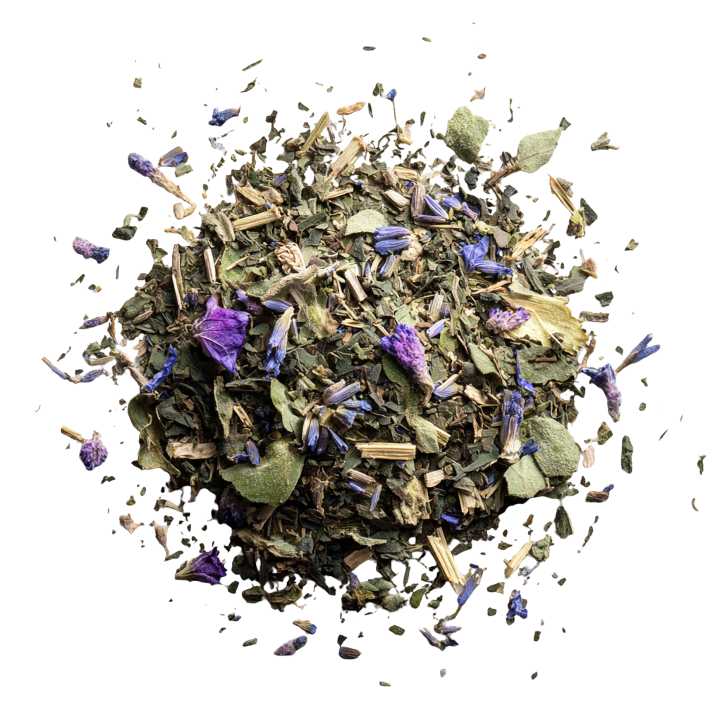 Lemon balm, mallow flower, borage flower, valerian root, marjoram, lavender